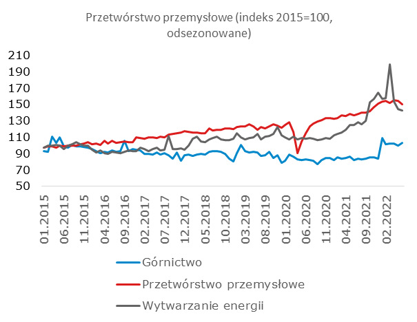 Na pytanie, która podkategoria odpowiadała za słaby wynik produkcji przemysłowej, odpowiedź jest równie prosta: poza energią każda. Najmocniej spadła produkcja trwałych dóbr konsumpcyjnych (-6,4% m/m, SA), słabo radziły sobie też dobra zaopatrzeniowe (-2,3% m/m, SA) - te 2 kategorie wybijały się wyraźnie ponad trend w poprzednich kilku miesiącach, duże minusy to kwestia powrotu do trendu.