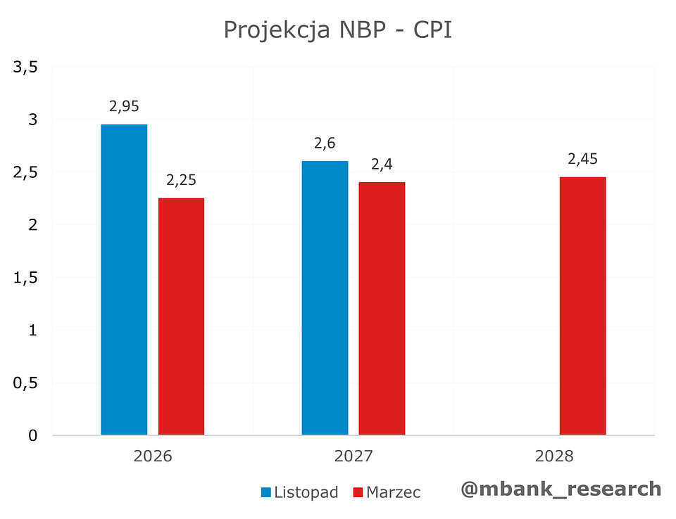 Czego możemy oczekiwać w dalszej części roku? Jeszcze przed tygodniem napisalibyśmy śmiało, że punkt docelowy na stopach to 3%. Obecnie jednak sytuacja stała się bardziej złożona. W zależności od trwałości wojny na Bliskim Wschodzie wydaje się, iż przestrzeń do kolejnych obniżek może kurczyć się. Być może część z tych wątpliwości rozwieje dzisiejsza konferencja prasowa prezesa Glapińskiego. Na ten moment pozostajemy w trybie "wait-and-see" - najbliższe posiedzenie niemal na pewno upłynie pod znakiem stabilizacji stóp.