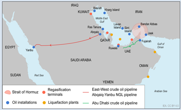 Długi przestój w niewielkim stopniu zagraża ciągłości dostaw. Międzynarodowa Agencja Energetyki (IEA) zrobiła zestawienie dokąd trafia ropa produkowana przez państwa arabskie. Spośród 15 mln baryłek surowca produkowanych dziennie 12,8 mln (85%) trafia do państw azjatyckich – głównie Chin oraz Indii. Sam udział Europy to około 3% transportowanego surowca. Podobna struktura widoczna jest także wśród produktów ropopochodnych, choć tu udział Starego Kontynentu jest lekko wyższy.