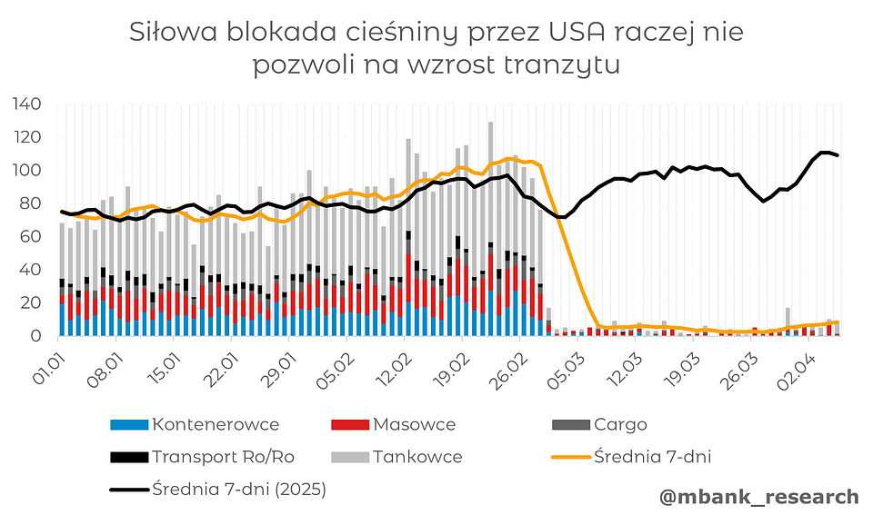 Przedłużająca się wojna w cieśninie Ormuz będzie miała umiarkowany wpływ na łańcuchy dostaw paliw w Europie. Niemniej Europa istotnie odczuje wzrost cen ropy i gazu. To dość jednoznacznie pogorszy bilanse handlowe państw UE - ubytek w Polsce - deficyt około 0,5% PKB i będzie zbliżony do państw Europy Zachodniej.